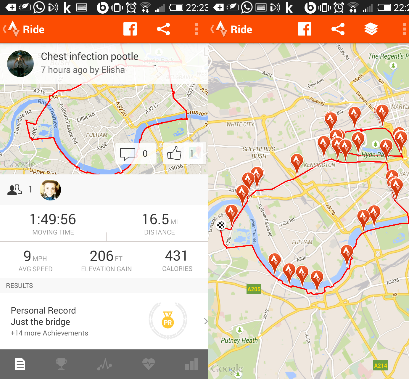 Plums brought with her my much anticipated Shewee and it was a real moment of bliss just to lie in Hyde Park gossiping about recent events and giggling before continuing on our ride. Human contact is definitely going to be important when I am away and I know that the messages of support that I am already beginning to receive will be little lifelines when I’m camping in the wilderness and have forgotten how to converse.